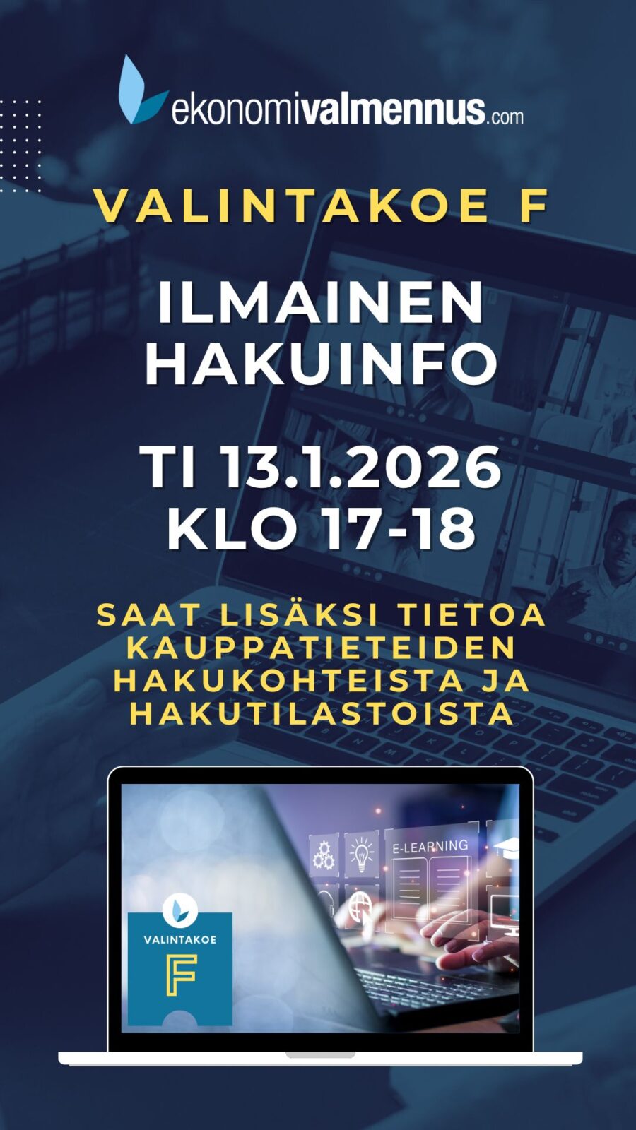 Valintakoe F hakuinfo ti 13.1.2026 klo 17.00 - 18.00